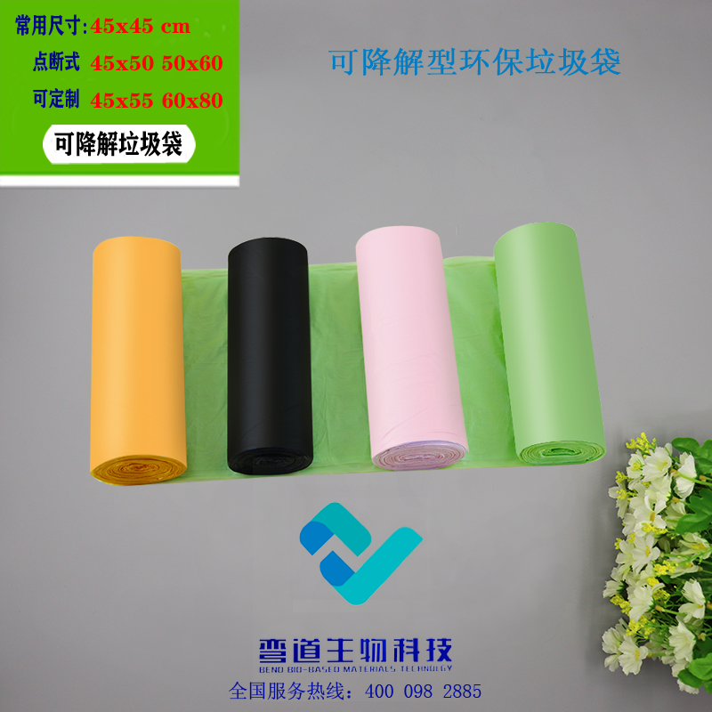 本公司生产的全生物降解购物袋,是和“中科”院 “南大”生物降解研宄院共同研发的全生物降解塑料产 品。2021年经过国家检测达标,执疔标准GB/T38082-2019,经过多家商场合作定制产品和良好的售后服务、达到客户一致好评。_目前我公司产品远销河南、湖北、安徽、河北等省市,日产量各种规累计达十万条。为人类环境保护做出了重大责献。